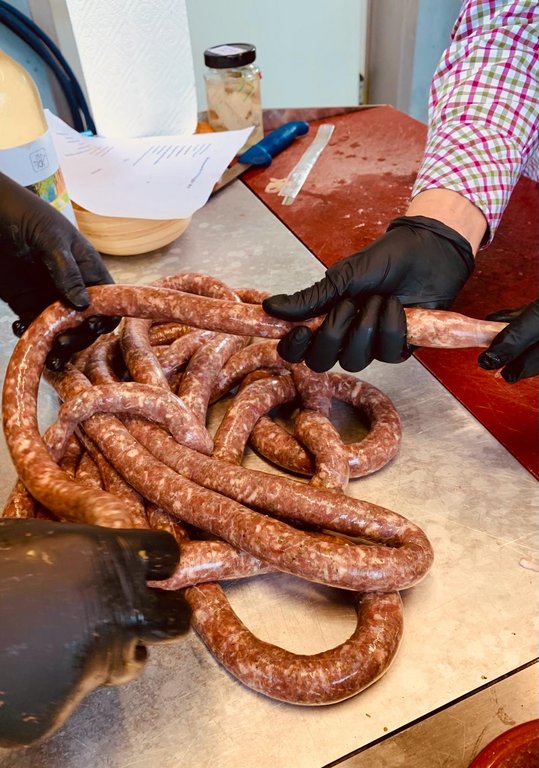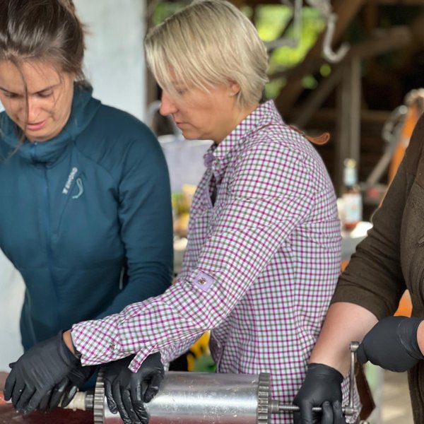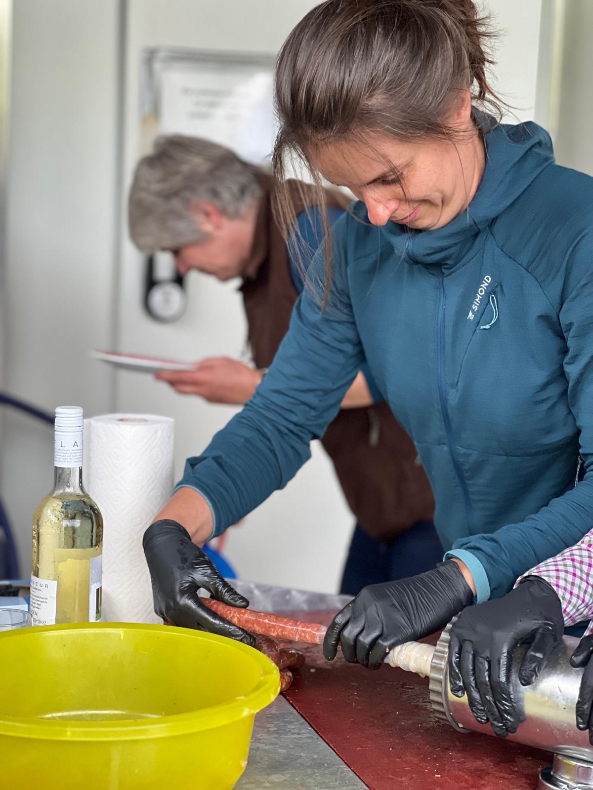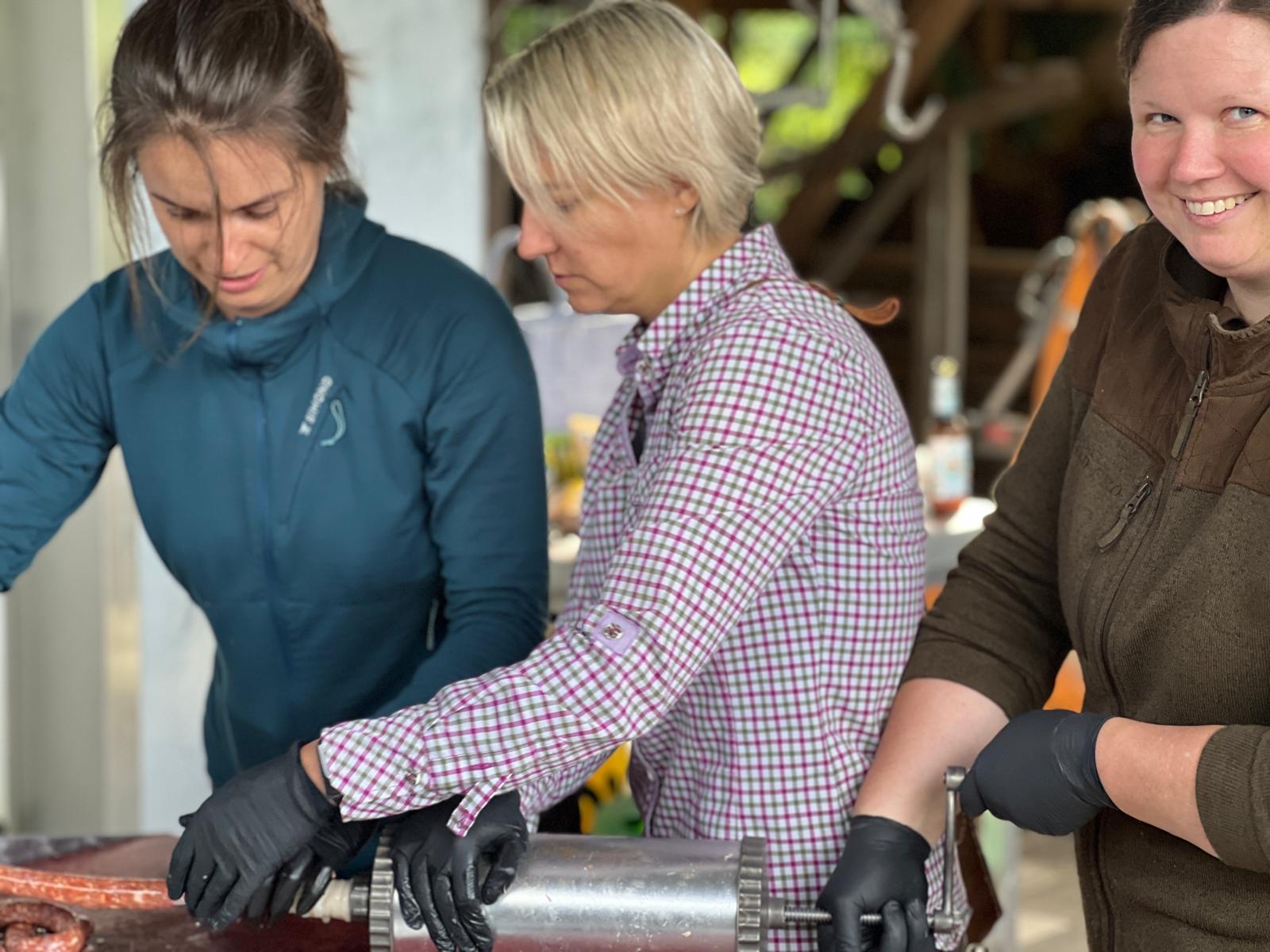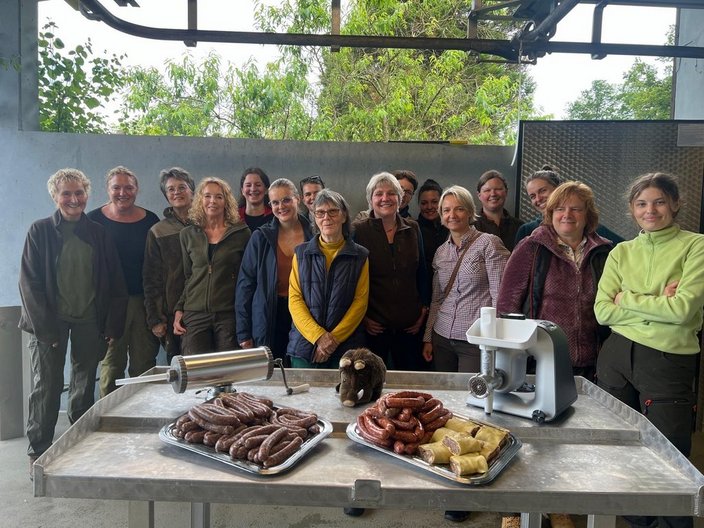 Unter fachkundiger Anleitung lernten die Teilnehmerinnen, wie man das Fleisch auslöst, die Wurstmasse zubereitet und abschmeckt sowie frische Bratwürste in Naturdarm füllt. Die Ergebnisse konnten sich sehen lassen: Bratwürste nach Thüringer Art, würzige Salsiccia und sogar Maultaschen, zubereitet nach einem Rezept aus dem Wildkochbuch von Viktoria Fuchs.