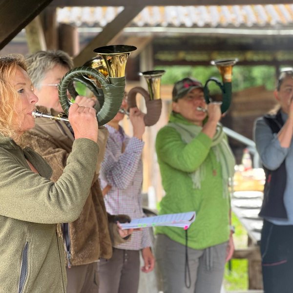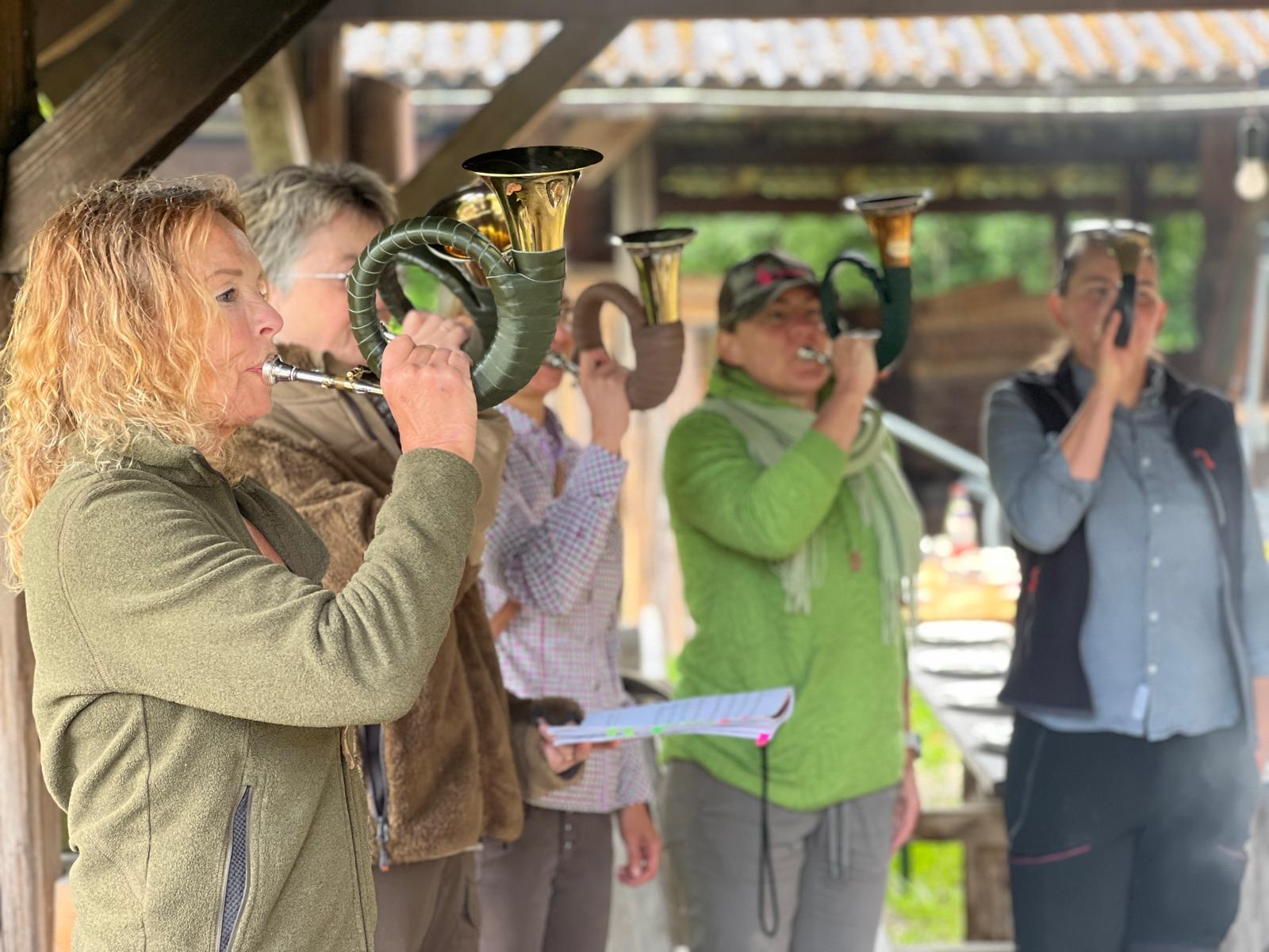 Die Arbeit in der Gruppe war nicht nur lehrreich, sondern auch ein wunderbares Gemeinschaftserlebnis. Der Austausch von Erfahrungen und Tipps machte den Abend für alle zu etwas Besonderem. Eine weitere musikalische Note setzten sechs der Jägerinnen, die mit ihren Jagdhörnern für stimmungsvolle Klänge sorgten.