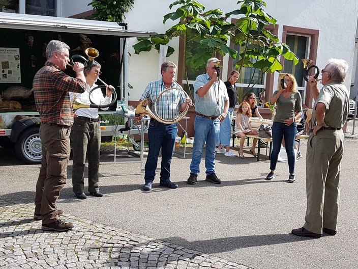 Die Jagdhornbläser erfreuten die Zuschauer mit einem Potpourri an Jagdsignalen.